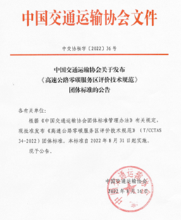 截止目前,协会批准立项170余项团体标准,已经发布了22项团体标准,其中今年初到8月份高质量发布8项标准,《技术规范》是8月16日正式发布。本《技术规范》可在我国广大地区的高速公路服务区进行应用推广,助力全国高速公路绿色低碳发展,逐步实现碳达峰碳中和目标。