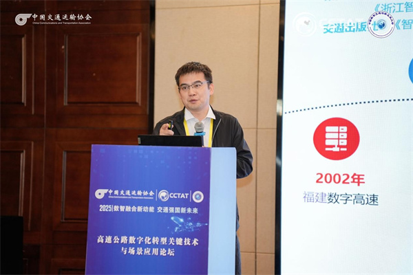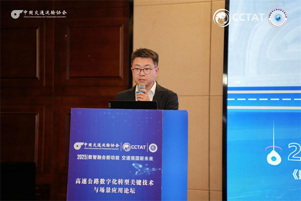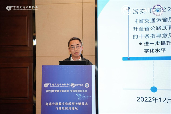 浙江数智交院科技股份有限公司副总工程师、智能交通研究院院长崔优凯报告题目为《浙江省公路基础设施数字化转型升级关键技术与应用》。报告围绕浙江省公路基础设施数字化转型升级工作,重点介绍在高速公路智能收费、智慧服务区等典型场景下关键技术的探索,以及在相关工程中的应用情况,为推动交通基础设施数字化转型升级提供参考。