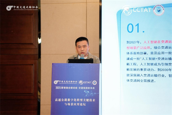 广州国交润万交通信息有限公司首席技术官林水生报告题目为《人工智能+赋能交通基础设施数字化转型升级》。