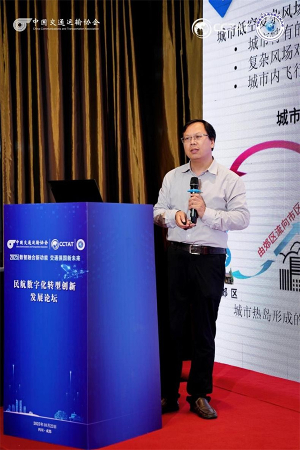 中国民航大学空管学院副院长魏志强报告题目为《低空复杂风场的探、算、造、管》。团队从探测反演、仿真计算、风场再造、风险管控四大维度,聚焦破解复杂气象对飞行器安全高效飞行的制约难题,构建起全链条技术解决方案。具体包括基于激光雷达的风场探测反演算法、基于人工智能的分钟级临近预报模型、阵列风扇式风场再造系统等,为实现更安全、更可靠的低空飞行运行提供关键技术支撑。